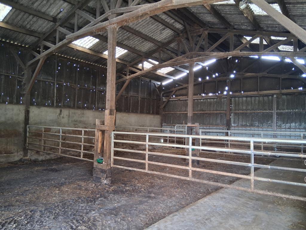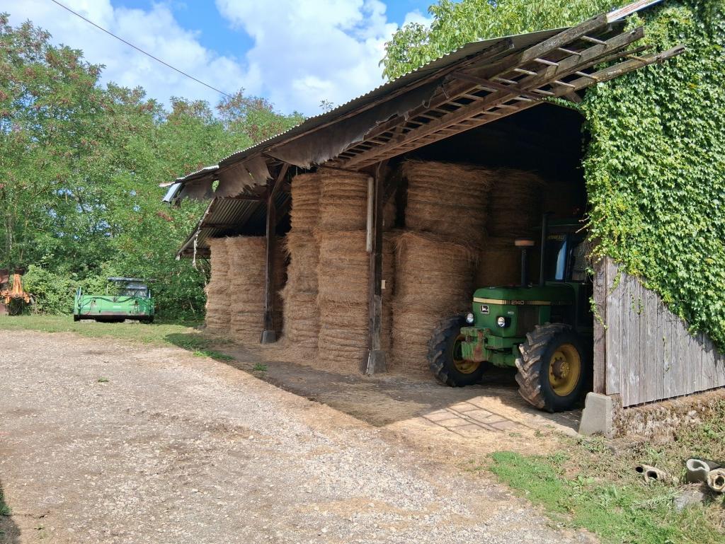 Les bâtiments d’exploitation comprennent une stabulation principale d’environ 300 m² destinée aux vaches allaitantes, complétée par plusieurs hangars de plus petite taille permettant l’accueil des génisses, le stockage du foin et du matériel. L’exploitation fonctionne en grande partie avec son propre parc matériel, ancien mais entretenu, et s’appuie ponctuellement sur des entreprises de travaux agricoles locales pour certaines opérations culturales.