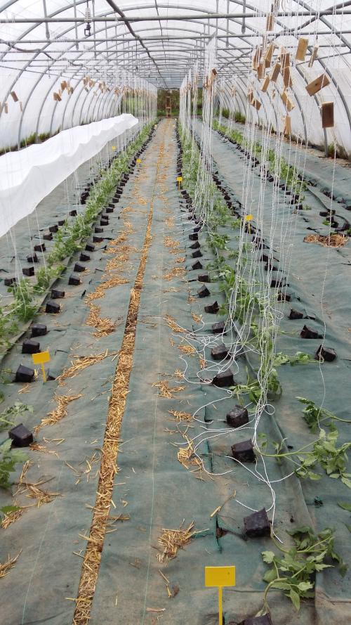 L’accès à l’eau est assuré par un forage alimentant le bâtiment, et des regards répartis sur les parcelles et à proximité des serres. Un système de goutte-à-goutte est disponible et prêt à l’emploi. Le système d’aspersion existant en plein-champs est lui aussi prêt à l’emploi. Celui sous serre est fonctionnel mais nécessite une amélioration afin de garantir une irrigation plus homogène.