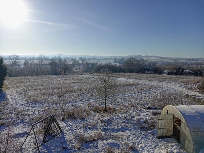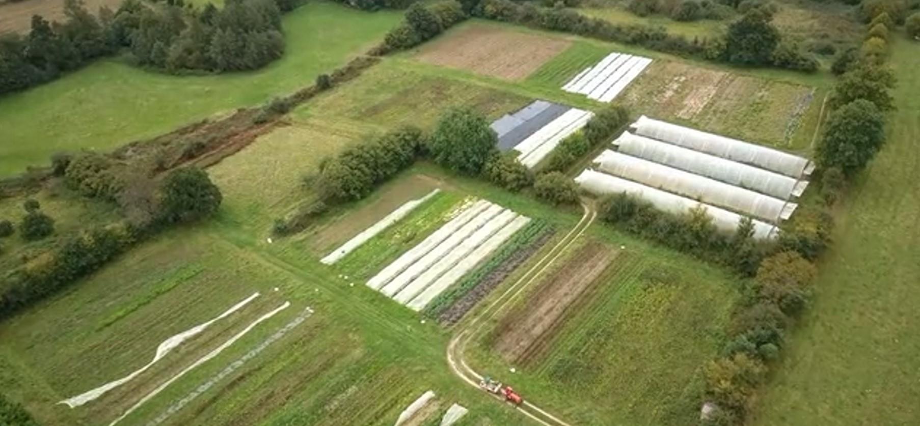 La ferme s’étend sur une surface totale de 6,43 hectares, intégralement conduite en agriculture biologique depuis sa création en 2009. Le système de production repose principalement sur le maraîchage diversifié, avec environ 1,55 hectare de cultures de plein champ et 1 200 m² de serres maraîchères, complétés par un tunnel de pépinière permettant la production de l’ensemble des plants sur place. Les sols, de nature limo-sablo-argileuse, sont drainants et bien structurés. Les parcelles maraîchères, exposées sud à sud-est, sont organisées en planches homogènes de 40 mètres de long, facilitant le travail mécanisé et manuel.