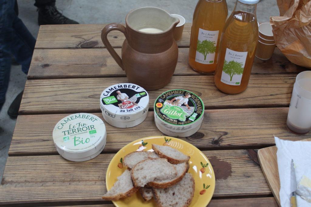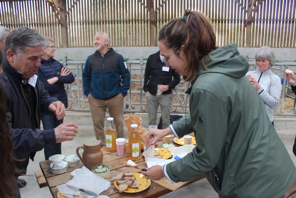 Plusieurs points ont retenu l’attention des participants : la viabilité économique de la ferme, la satisfaction des éleveurs.euses et des « vaches bio heureuses ». En bio, la santé des animaux est axée principalement sur la prévention, avec des méthodes et conditions d’élevage privilégiant le bien-être de l’animal et stimulant les défenses naturelles. La visite s’est terminée par une dégustation de camemberts Bio AOP Gillot et de produits cidricoles bio.